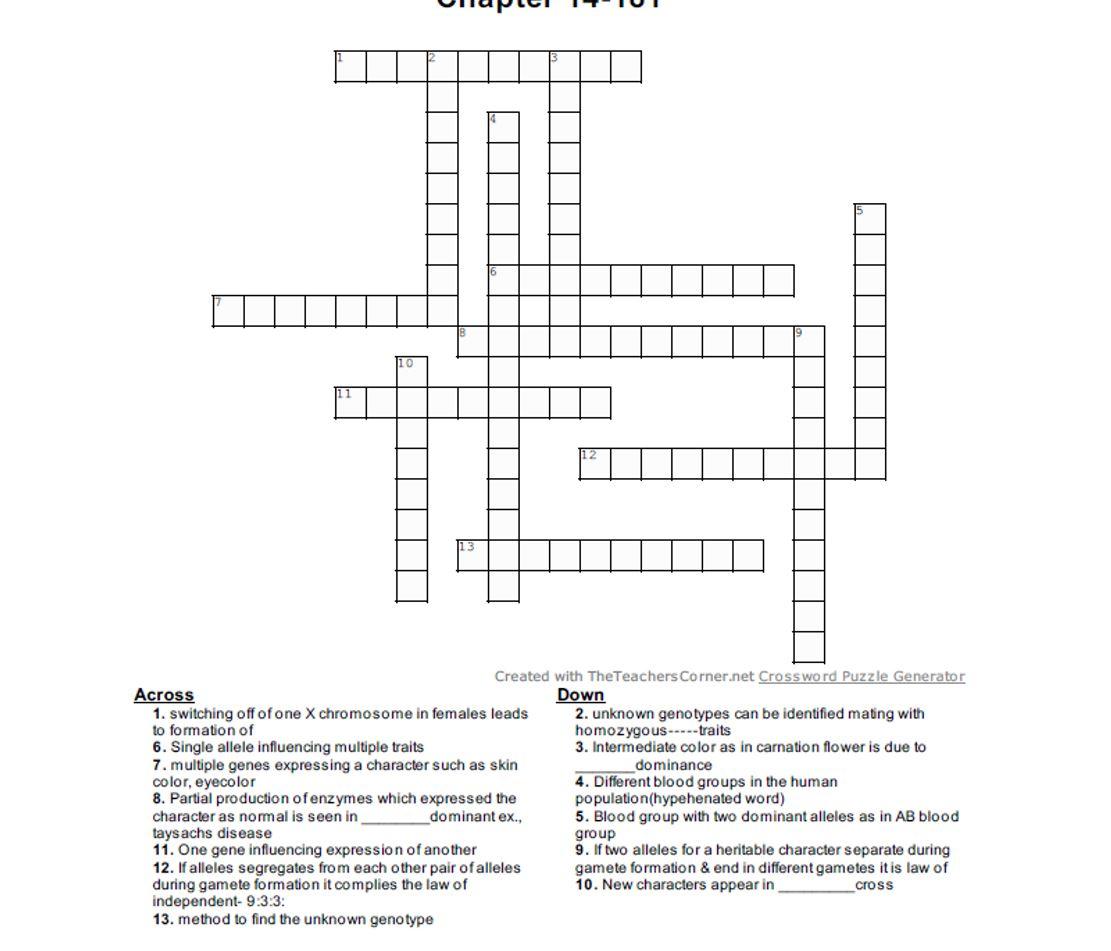 Genetics Crossword Puzzle Answer Key : An organism that is genetically engineered by inserting a gene from other organisms.. A word bank can be provided or removed to make the crossword more or less challenging. A word bank genetics crossword puzzle answer key crossword puzzle solution for. Genetics crossword puzzle key please complete the crossword puzzle below. Figs of the holy land crossword puzzle. Crossword puzzle printable version back to all crossword puzzles.